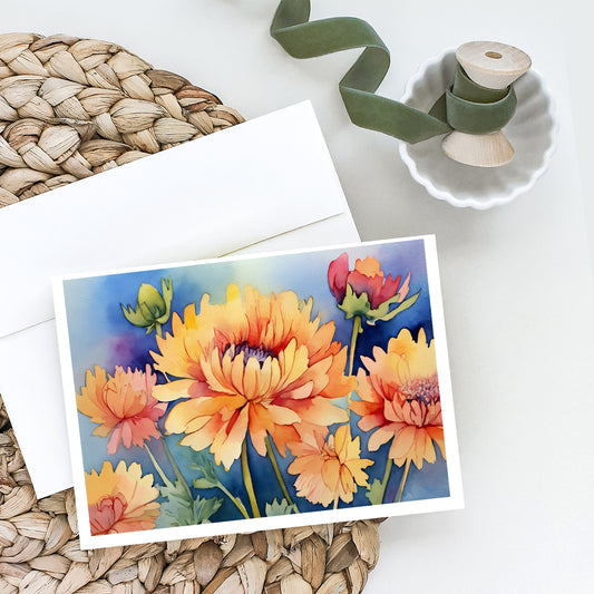 Chrysanthemums in Watercolor Greeting Cards Pack of 8