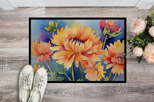 Chrysanthemums in Watercolor Memory Foam Kitchen Mat