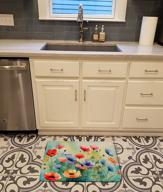 Anemones in Watercolor Memory Foam Kitchen Mat