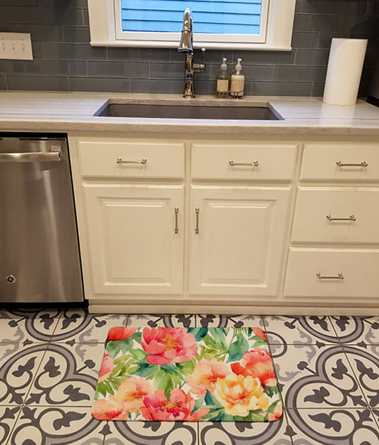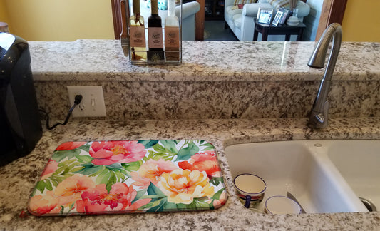 Indiana Peonies in Watercolor Dish Drying Mat