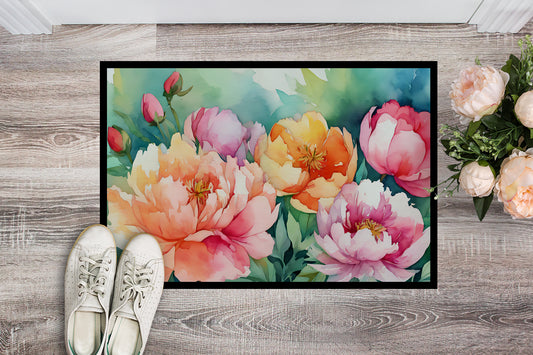 Indiana Peonies in Watercolor Doormat
