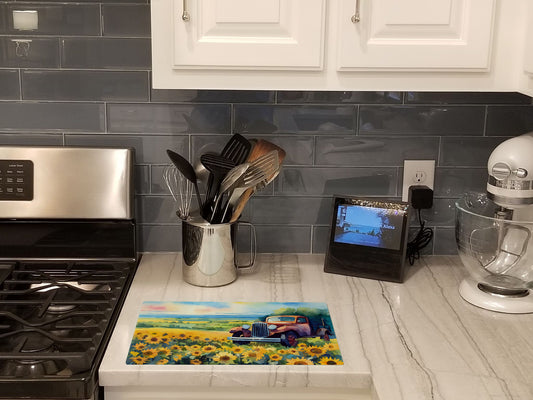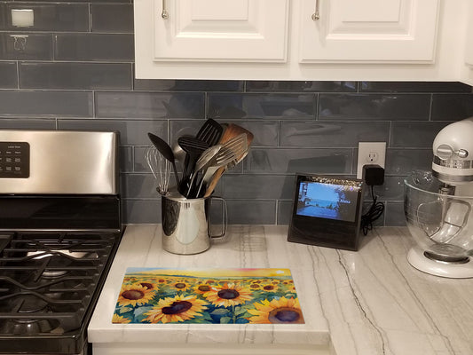 Kansas Sunflowers in Watercolor Glass Cutting Board