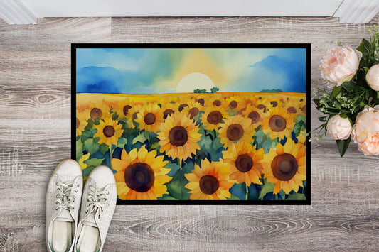 Kansas Sunflowers in Watercolor Memory Foam Kitchen Mat