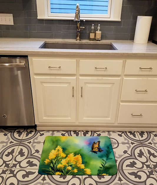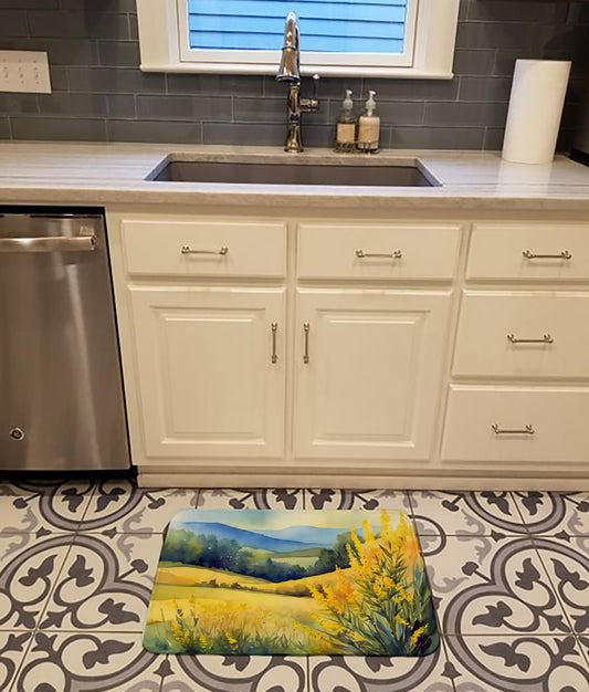 Kentucky Goldenrod in Watercolor Memory Foam Kitchen Mat