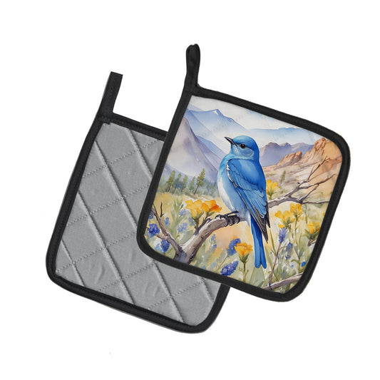 Nevada Mountain Bluebird Pair of Pot Holders