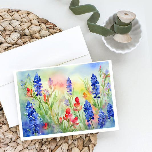 Texas Bluebonnets in Watercolor Greeting Cards Pack of 8