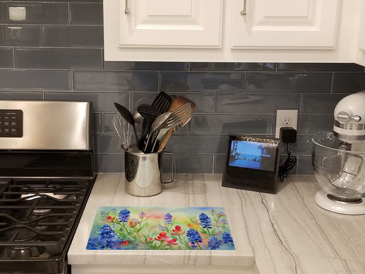 Texas Bluebonnets in Watercolor Glass Cutting Board
