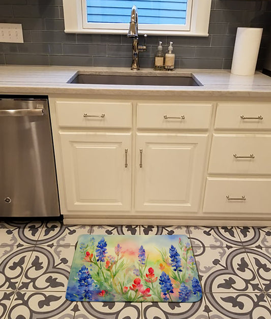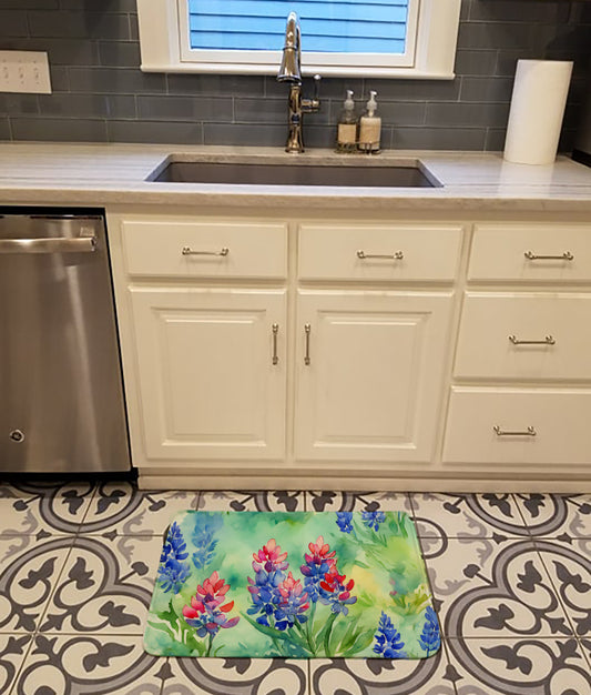Texas Bluebonnets in Watercolor Dish Drying Mat