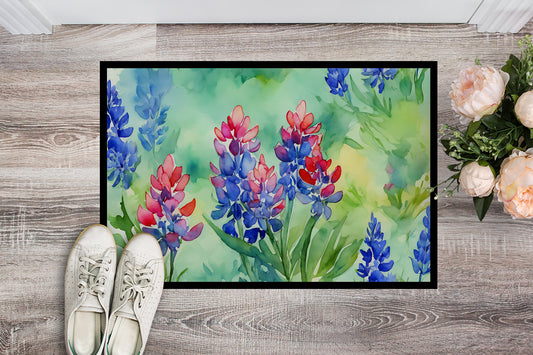 Texas Bluebonnets in Watercolor Memory Foam Kitchen Mat