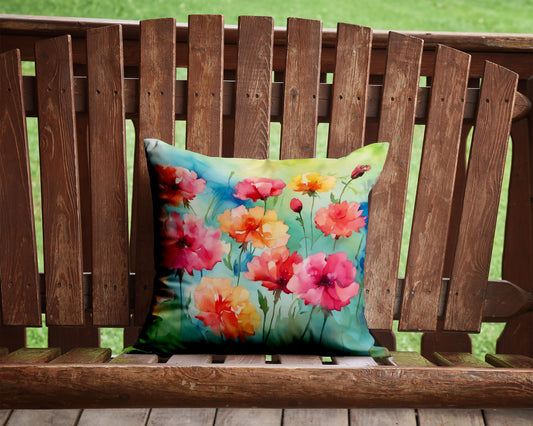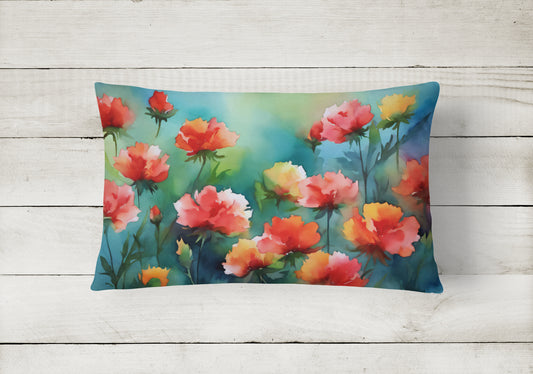 Ohio Scarlet Carnations in Watercolor Throw Pillow