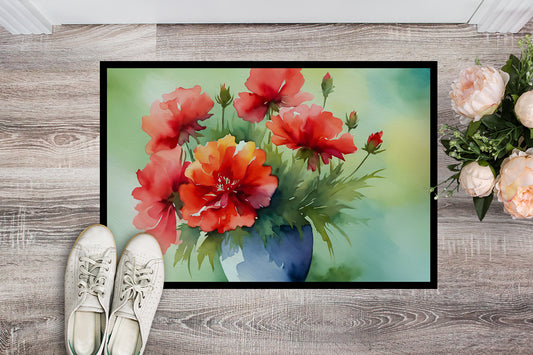 Ohio Scarlet Carnations in Watercolor Memory Foam Kitchen Mat