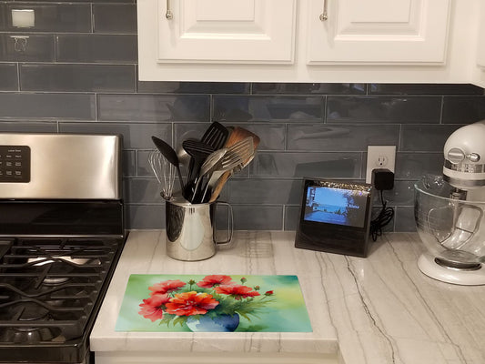 Ohio Scarlet Carnations in Watercolor Glass Cutting Board