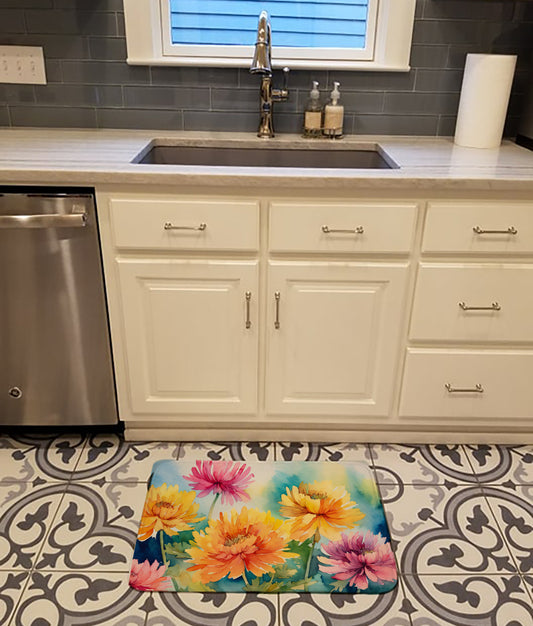 Chrysanthemums in Watercolor Memory Foam Kitchen Mat