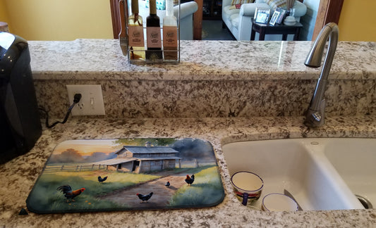 Chicken Coop at Dawn Dish Drying Mat