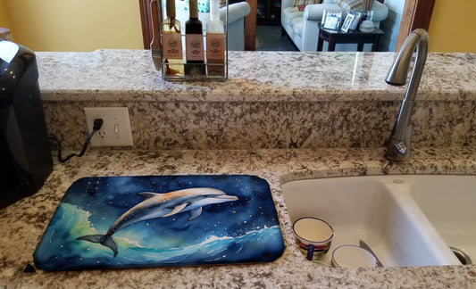 Dolphin in a Starry Sea Dish Drying Mat