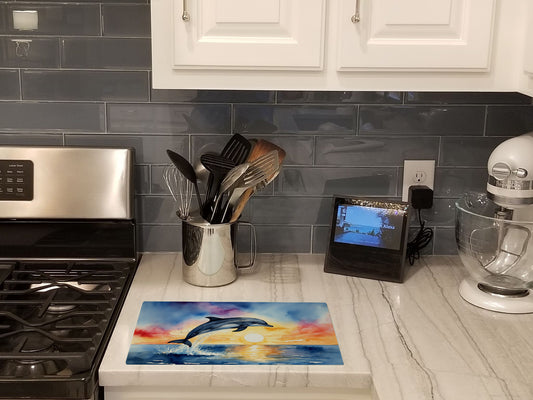 Dolphin Leaping at Sunrise Glass Cutting Board