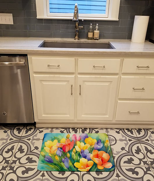 Freesias in Watercolor Dish Drying Mat