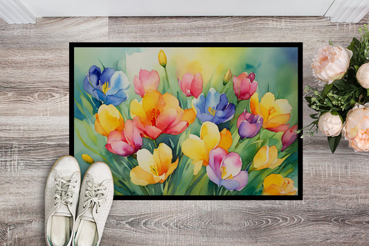 Freesias in Watercolor Memory Foam Kitchen Mat