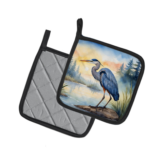 Blue Heron Emerging as the day fades Pair of Pot Holders