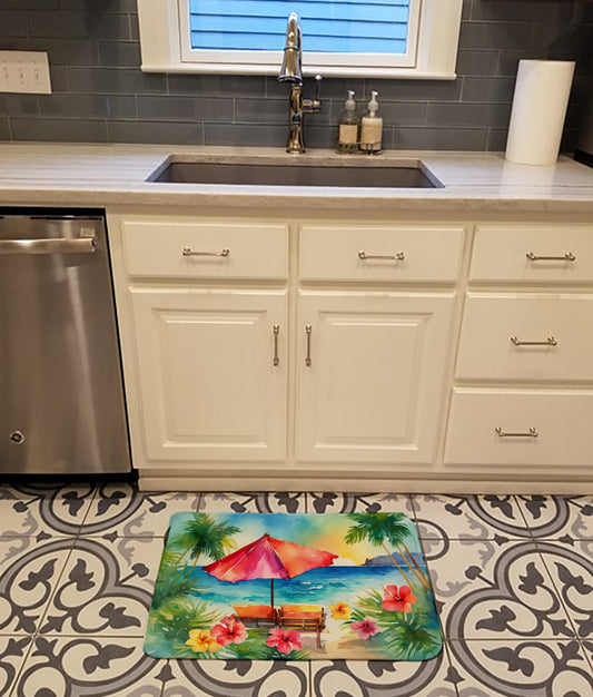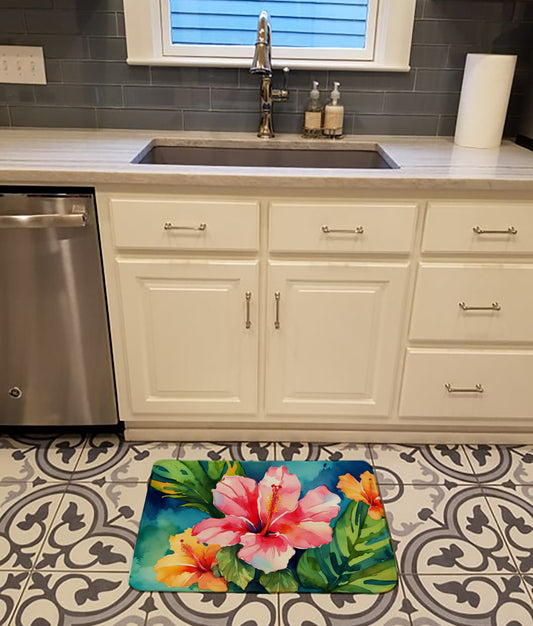 Hawaii Hawaiian Hibiscus in Watercolor Dish Drying Mat