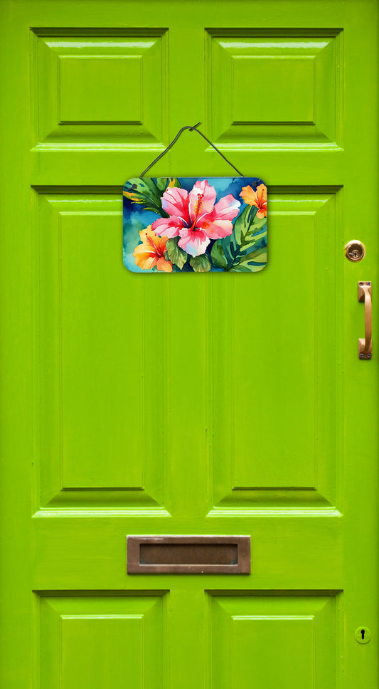 Hawaii Hawaiian Hibiscus in Watercolor Wall or Door Hanging Prints