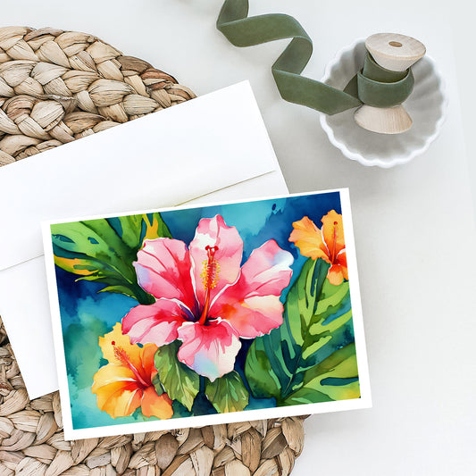 Hawaii Hawaiian Hibiscus in Watercolor Greeting Cards Pack of 8