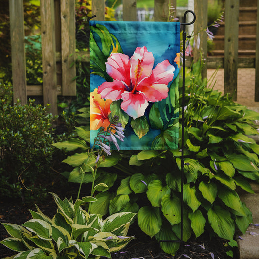 Hawaii Hawaiian Hibiscus in Watercolor Garden Flag