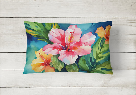 Hawaii Hawaiian Hibiscus in Watercolor Throw Pillow