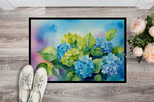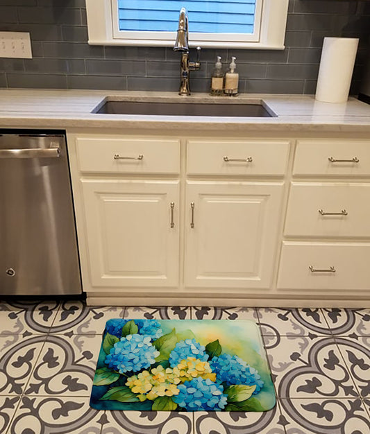 Hydrangeas in Watercolor Memory Foam Kitchen Mat