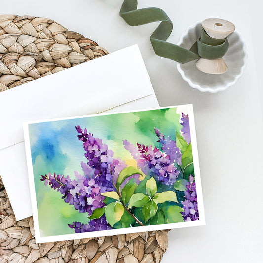 New Hampshire Purple Lilac in Watercolor Greeting Cards Pack of 8
