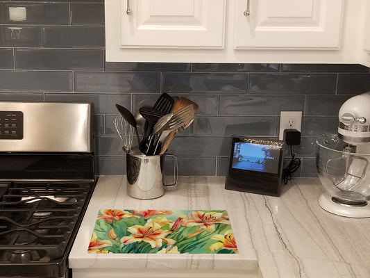 Lilies in Watercolor Glass Cutting Board