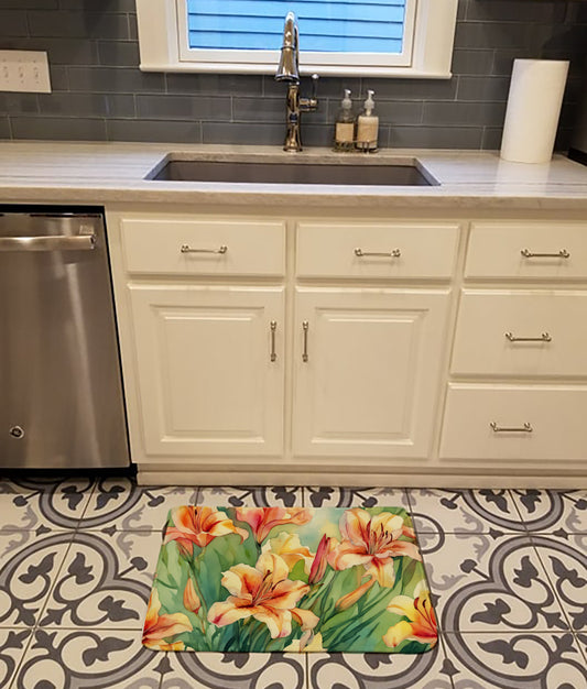 Utah Sego Lilies in Watercolor Dish Drying Mat
