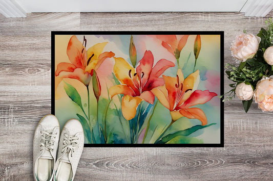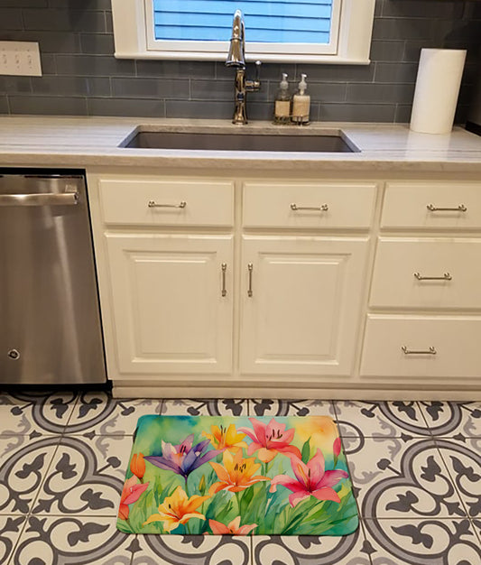 Lilies in Watercolor Memory Foam Kitchen Mat