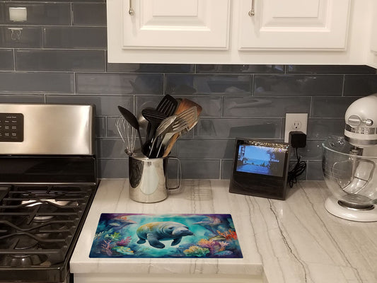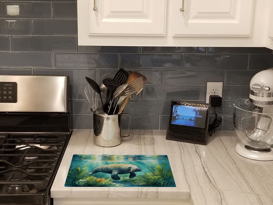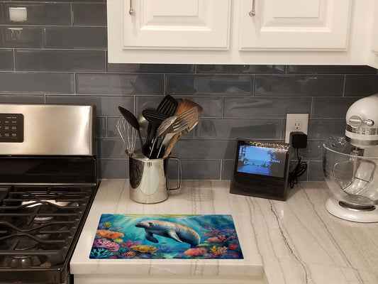 Manatee in a Crystal-Clear Spring Glass Cutting Board