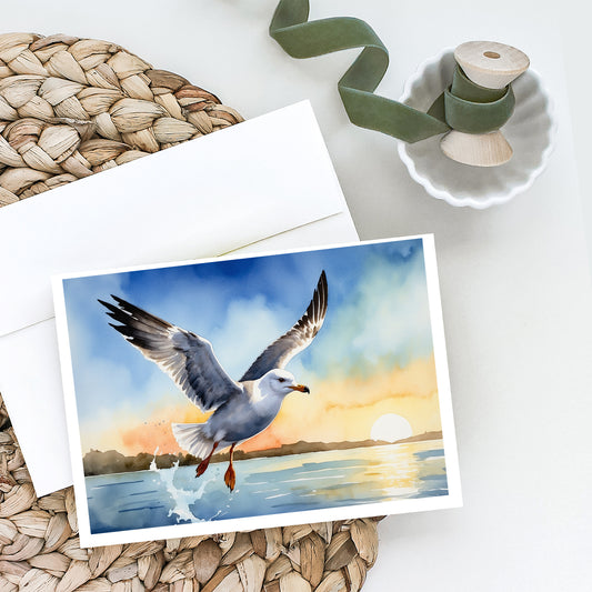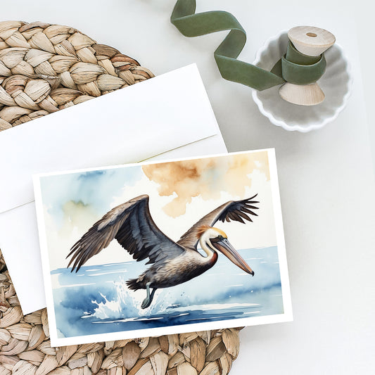 Pelican Fyling at Sunrise Greeting Cards Pack of 8