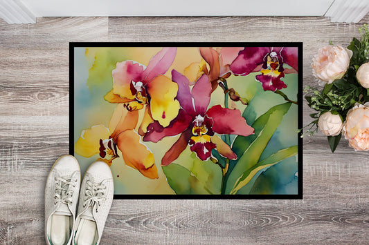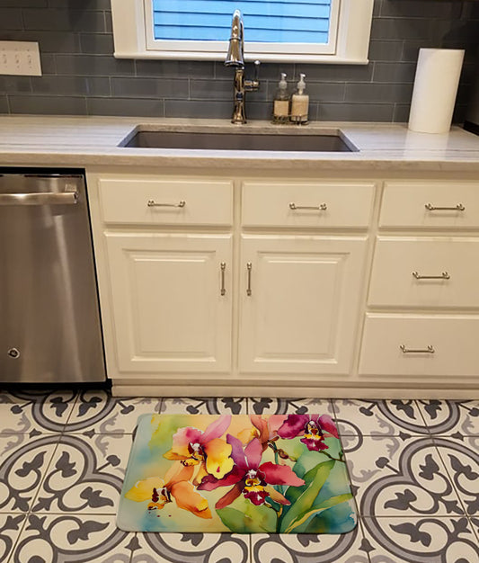Orchids in Watercolor Memory Foam Kitchen Mat