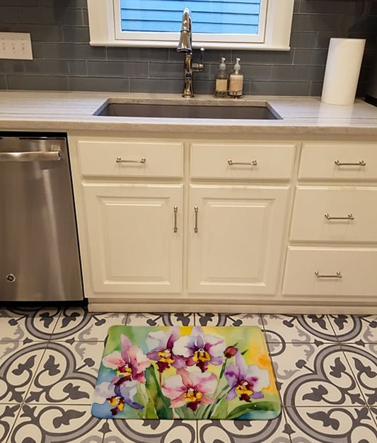 Orchids in Watercolor Dish Drying Mat