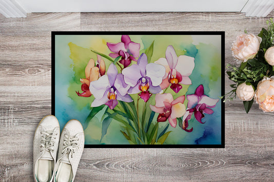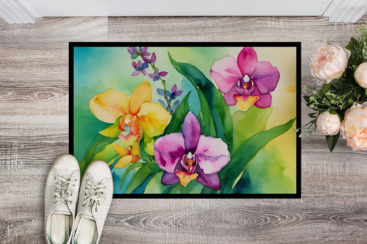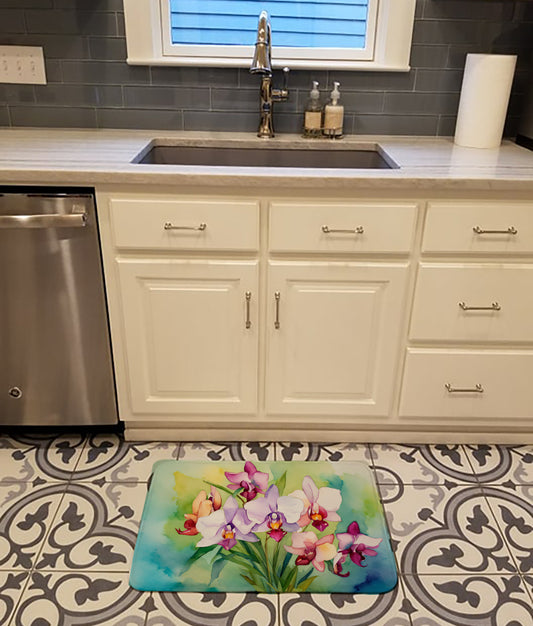 Orchids in Watercolor Memory Foam Kitchen Mat