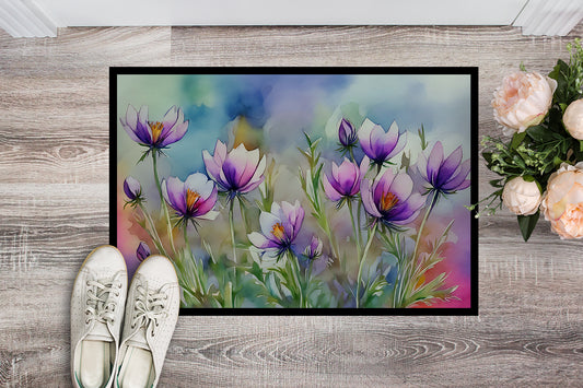 South Dakota Pasque Flowers in Watercolor Memory Foam Kitchen Mat