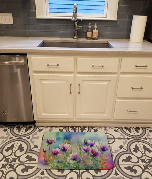 South Dakota Pasque Flowers in Watercolor Dish Drying Mat