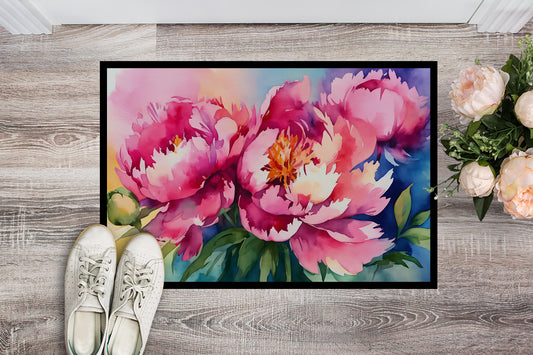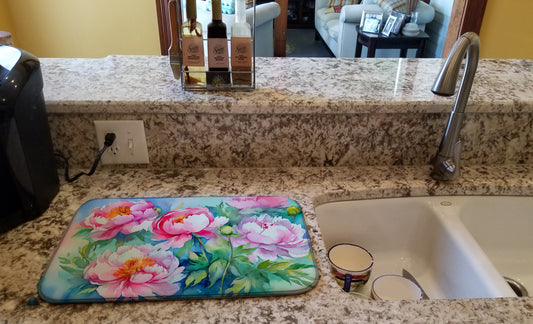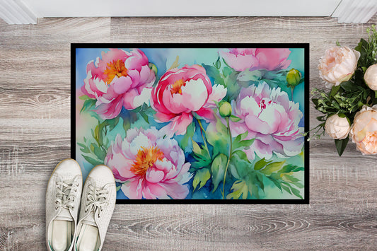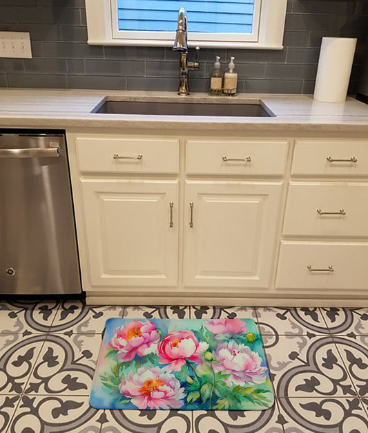 Peonies in Watercolor Memory Foam Kitchen Mat