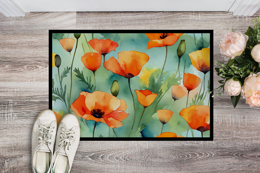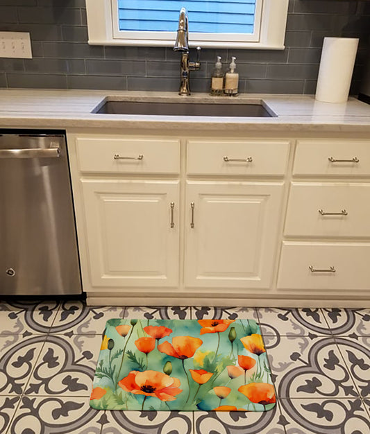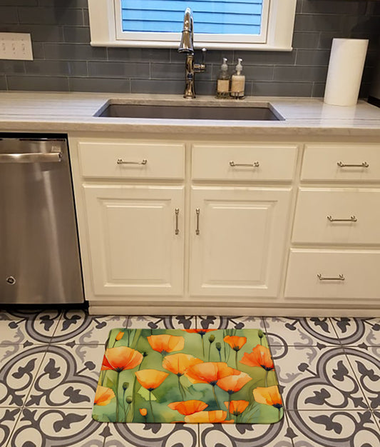 California California Poppies in Watercolor Memory Foam Kitchen Mat