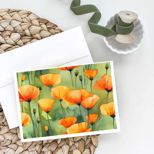 California California Poppies in Watercolor Greeting Cards Pack of 8