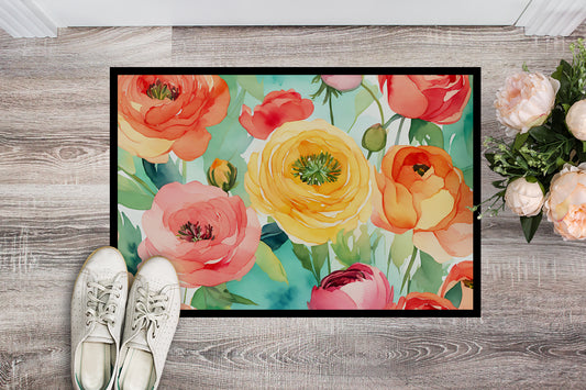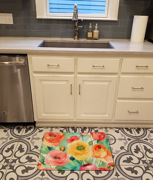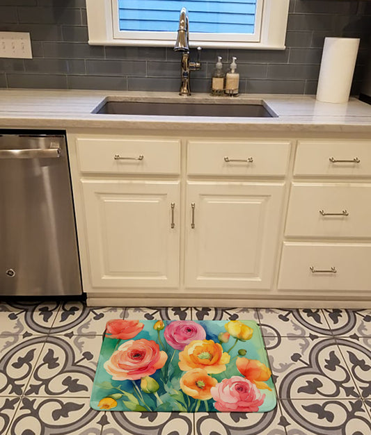 Ranunculus in Watercolor Memory Foam Kitchen Mat
