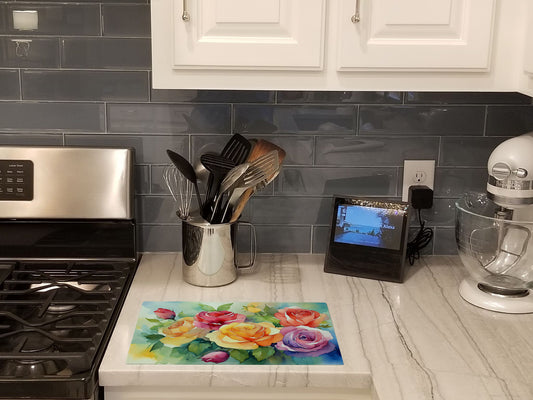 Georgia Cherokee Rose in Watercolor Glass Cutting Board