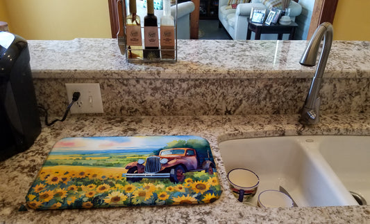 Kansas Sunflowers in Watercolor Dish Drying Mat