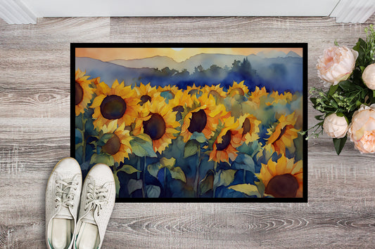 Sunflowers in Watercolor Memory Foam Kitchen Mat