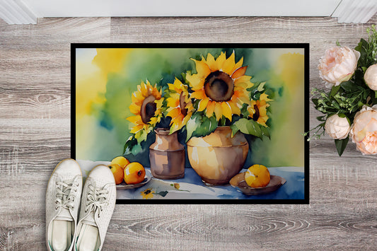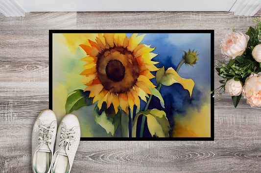 Sunflowers in Watercolor Memory Foam Kitchen Mat