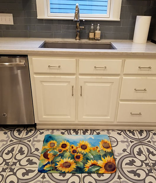 Sunflowers in Watercolor Dish Drying Mat