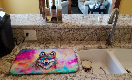 Hippie Animal Wolf Dish Drying Mat